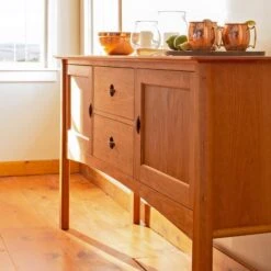 Add exquisite Asian style and extra storage space to your luxury kitchen or dining room with our Cherry Moon Hunt Board. With a design that features reverse tapered legs and a unique cove edge, this piece is both elegant and eye-catching. Our craftsmen carefully select the finest natural hardwoods and an eco-friendly oil finish for your hunt board to ensure the highest standards of quality!